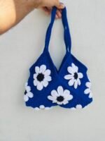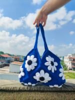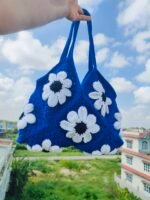 Blue Crochet 🧶 Bag with beautiful daisy flower pattern. Beautifully made with love and each yarn represents a strong bond and symbolize love and creativity.